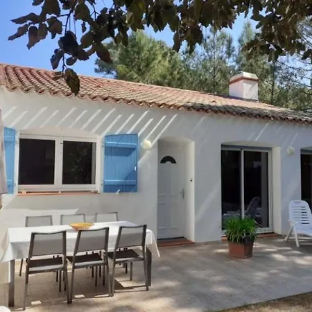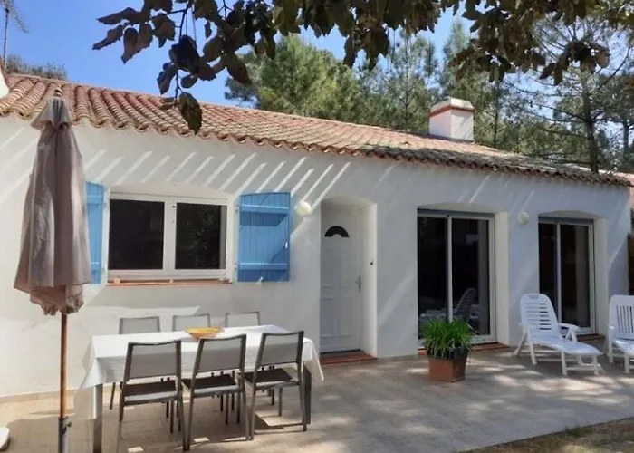 Situé à environ 2 km du Parc aquatique Atlantic Toboggan, Spacieuse maison en forêt proche plage pour 7 personnes - FR-1-323-570 Saint-Jean-de-Monts invite les clients à se détendre sur une terrasse.